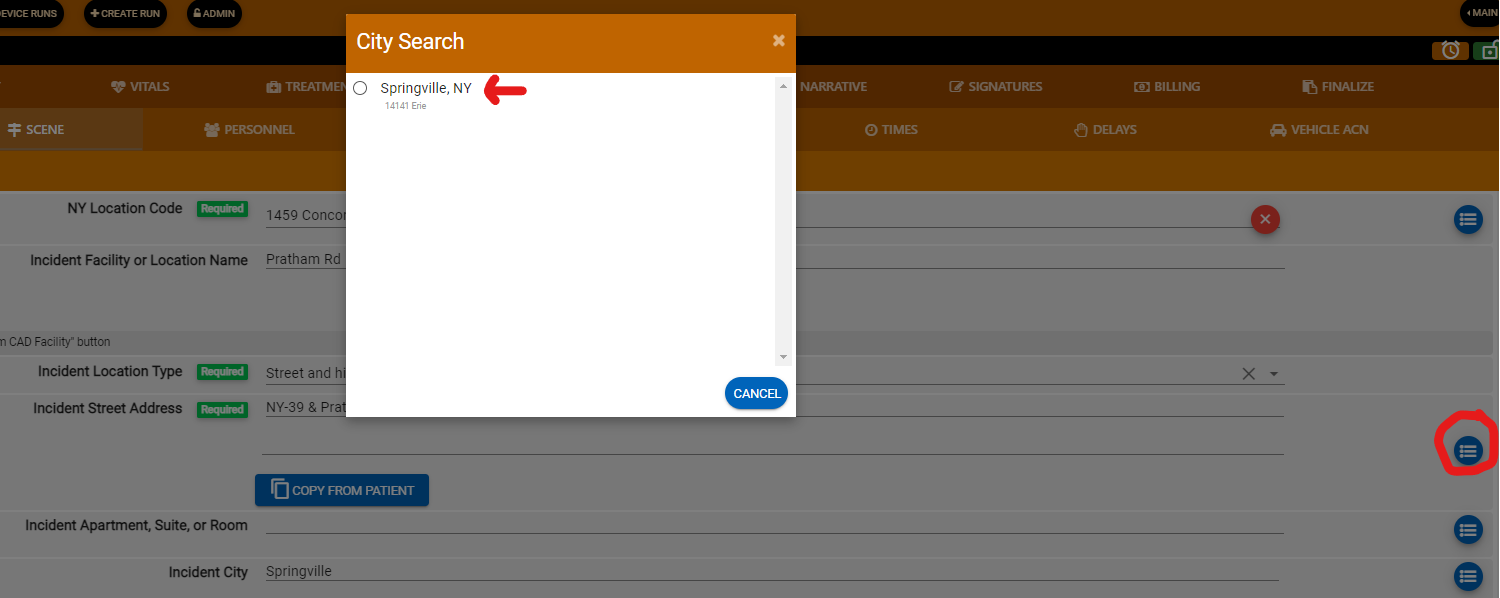 - You MAY have to click the blue "hamburger" icon to get the city list. Just select the correct city.
