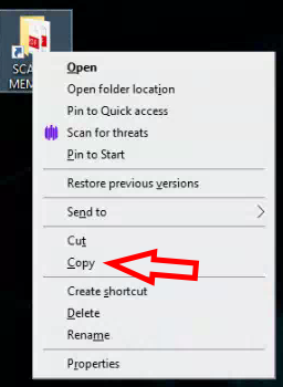- On the desktop, Right Click and COPY the SCANS shortcut (this is a Public Desktop Item)