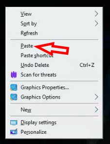 - On the desktop, in a blank area, Right Click and PASTE (creates a User Desktop copy)