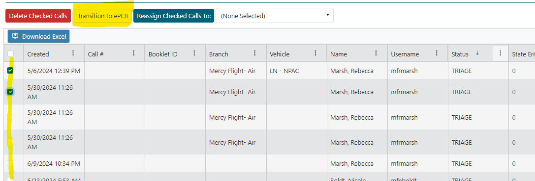 Triage ePCR's - how to view when "missing"